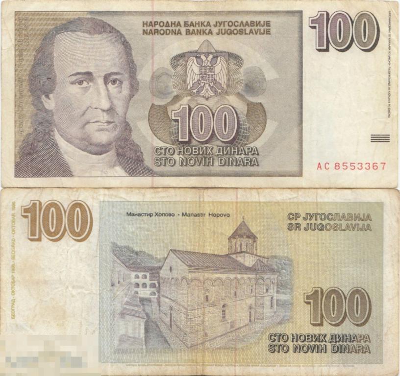 Югославия 100 Динар 1996