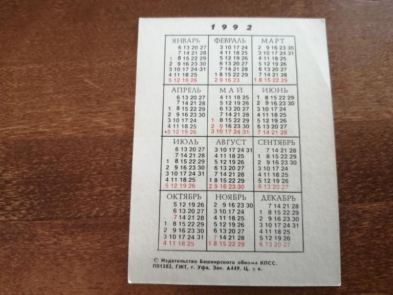 ! Календарь. 1992 г.