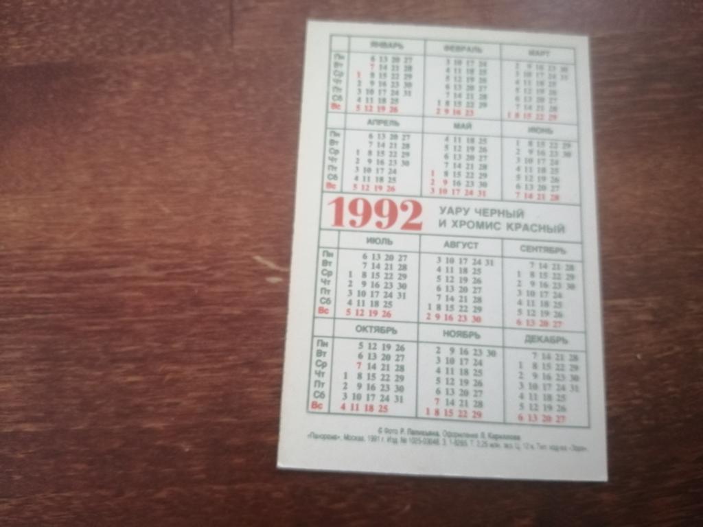 Календарь. 1992 г.