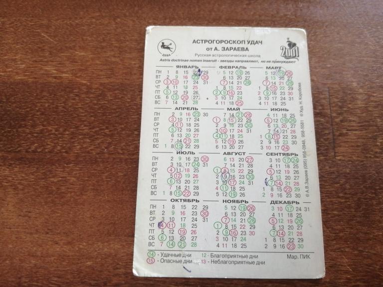 ! Календарь. 2001 г.