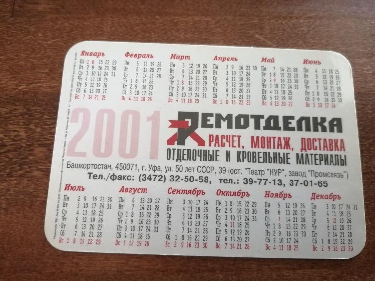 ! Календарь. 2001 г.
