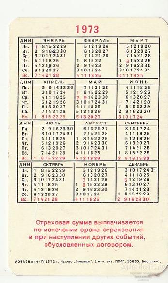 Календарь Госстрах 1973г