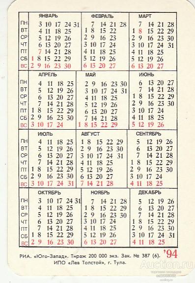 Календарь Собака 1994г