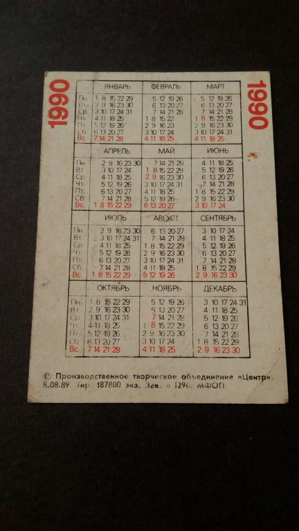 Календарик.1990