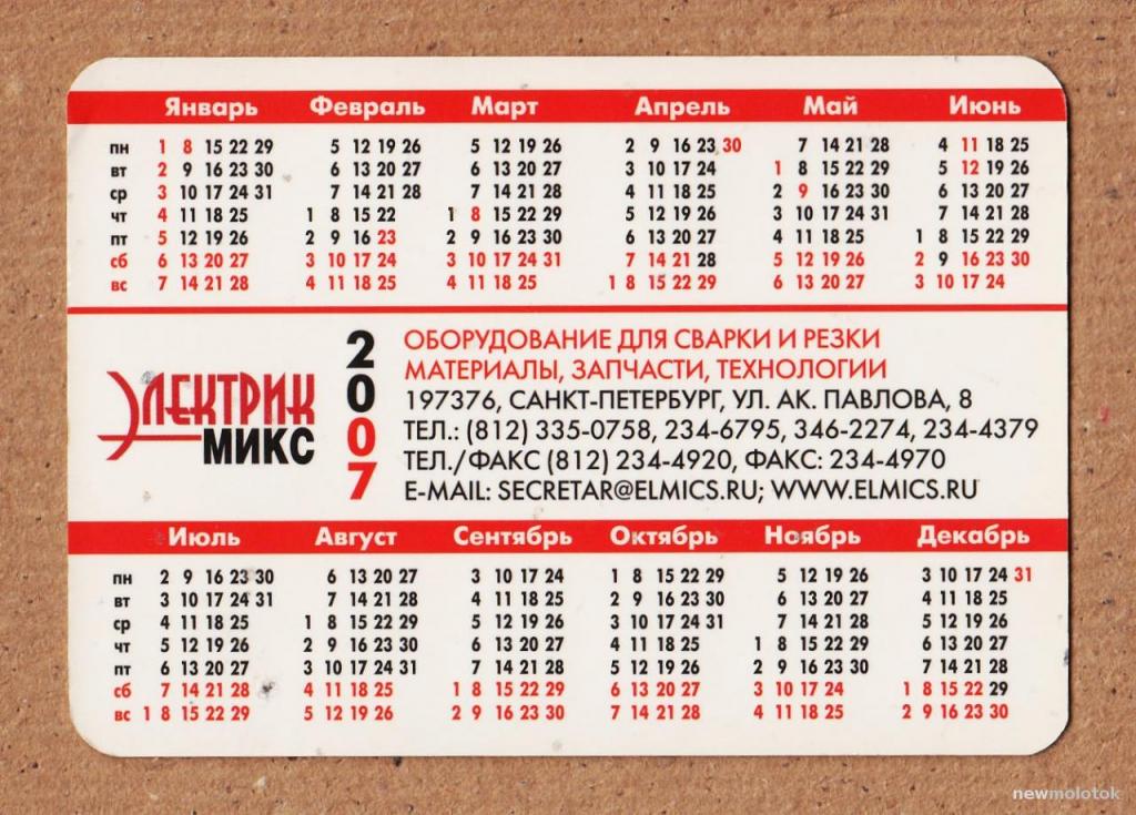 Календарик 2007 "Электрик-Микс"