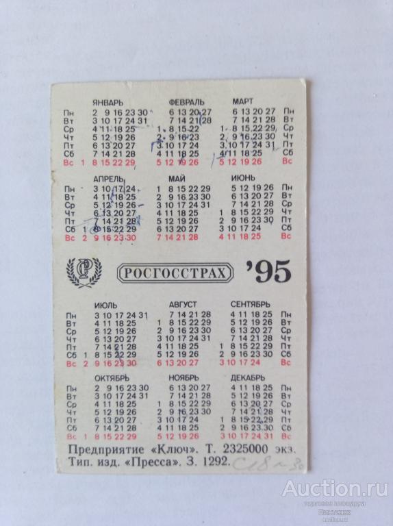 Купите "Календарик ГосСтрах 1995" по цене 10a.Покупайте сейчас, чтобы не упустить эту отличную цену на “Auction.ru”.