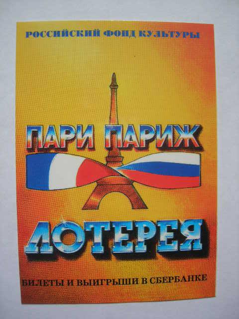 карманный календарик "лотерея Пари-Париж - выигрыши в Сбербанке" 1996