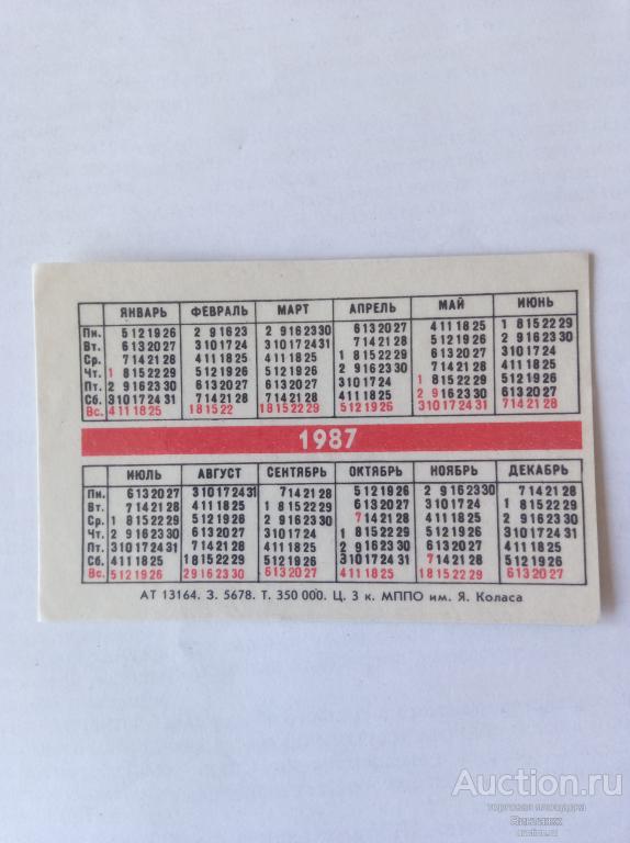 Календарик Минск 1987 Купите "Календарик Минск 1987" по цене 10a.