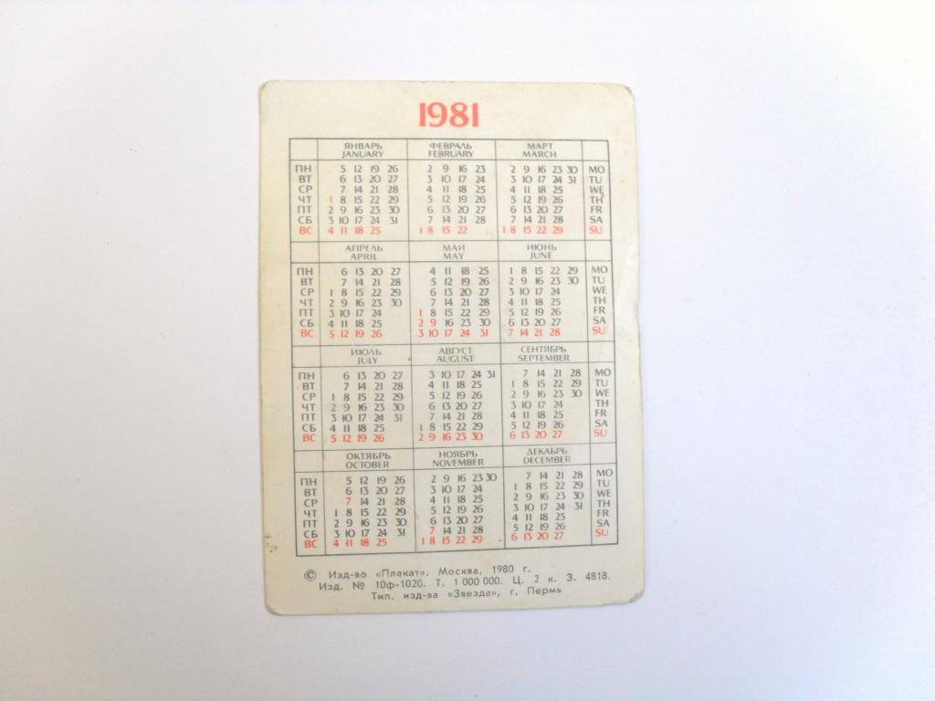 Календарик Палех, 1981г.
