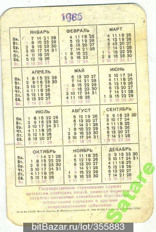 Календарик - Росгосстрах - 1985 год.