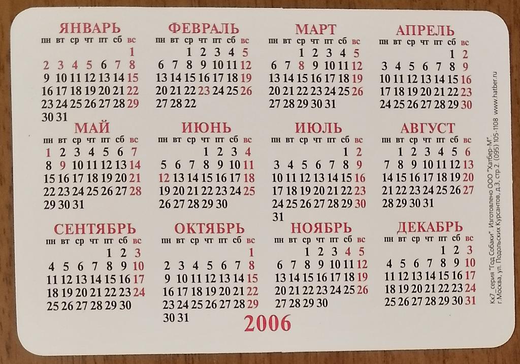 Календарик. Собака. 2006 г.