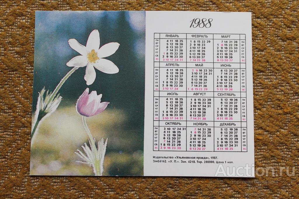 Купите "Календарик СССР 1988 Цветы" по цене 10a.Покупайте сейчас, чтобы не упустить эту отличную цену на “Auction.ru”.