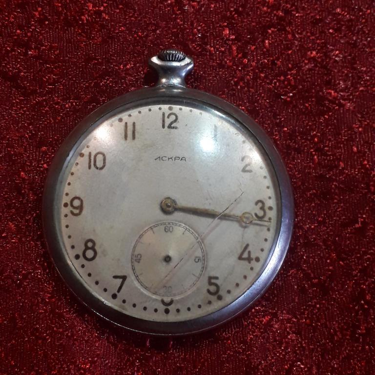 Часы механические, карманные Искра 17 камней. Механизм уникальный, часы в рабочем состоянии, год выпуска 1957. Отсутствует секундная стрелка. Эта механика-лучшее, что было выпущено под брендом Молния.