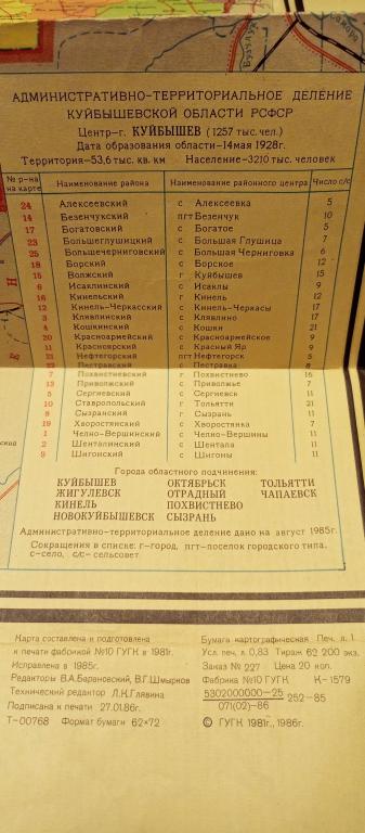 Карта Куйбышевской области. Состояние на фото.