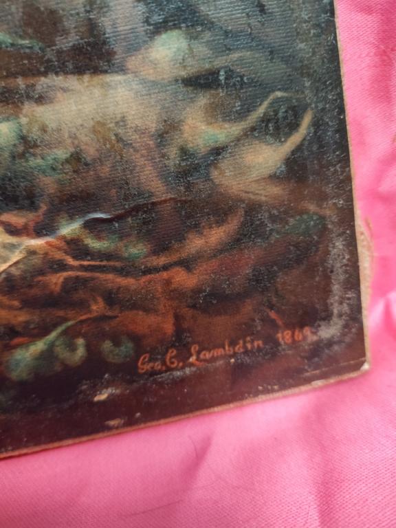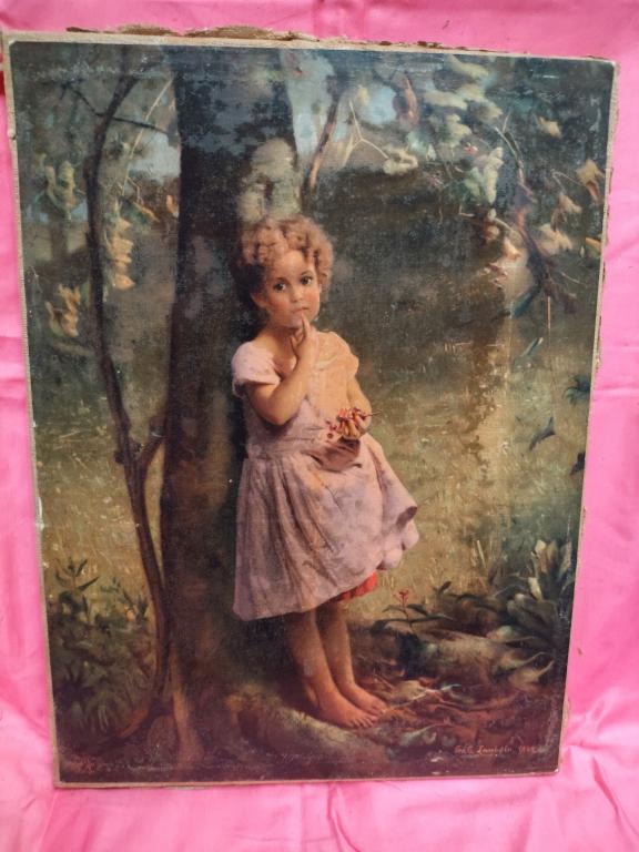 Картина Девочка у дерева, 1869 г. Лак потрескался и немного облупился. В остальном без повреждений. Подпись художника на фото.