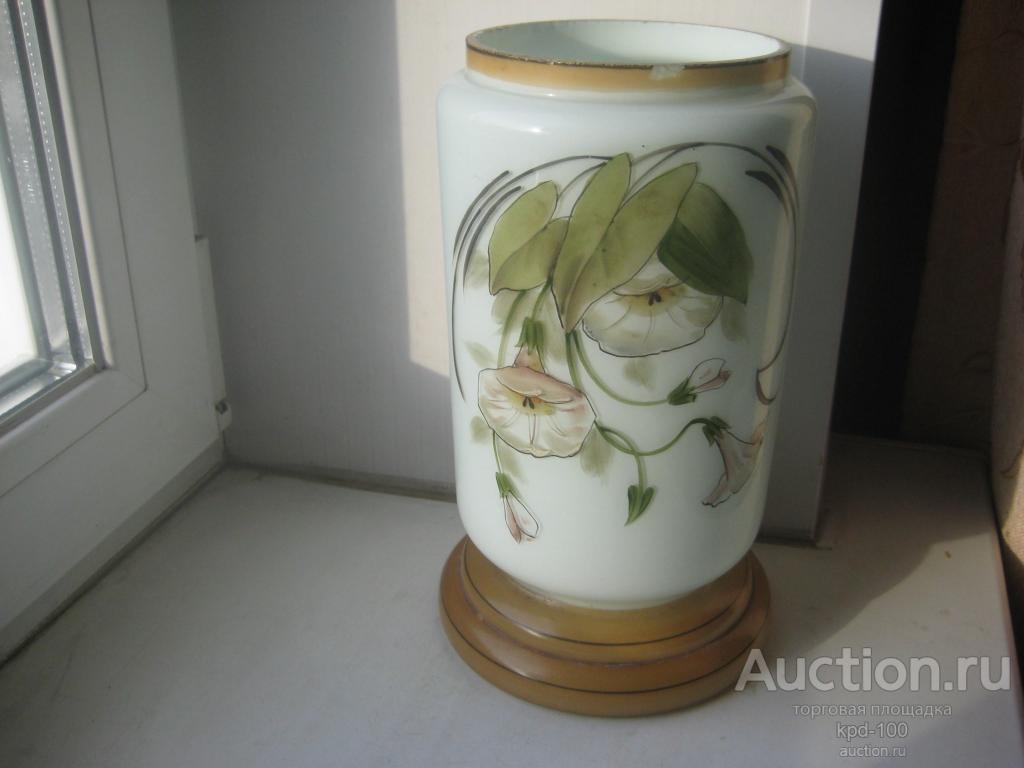 Молочное стекло, ручная роспись. Высота 26,5 см. Незначительные дефекты по кромке.