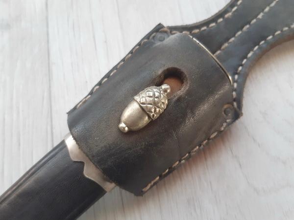 из рога оленя. Ножны из толстой натуральной кожи, с наконечником и