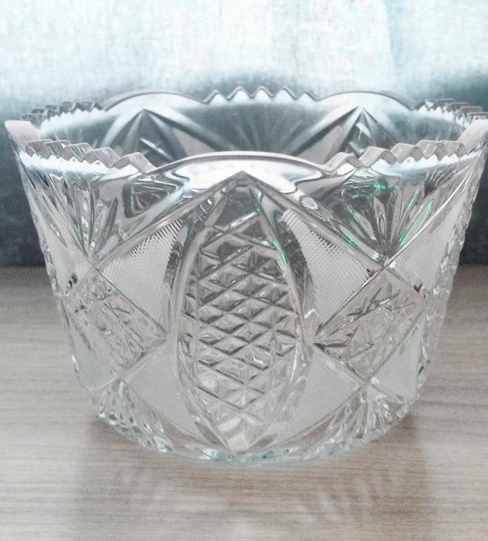 Хрустальная ваза конфетница. Настоящий толстый хрусталь, который не желтеет со временем. Состояние идеальное, никаких сколов, трещин и царапин. Высота - 10 см, верхний диаметр - 15 см, нижний - 10 см
