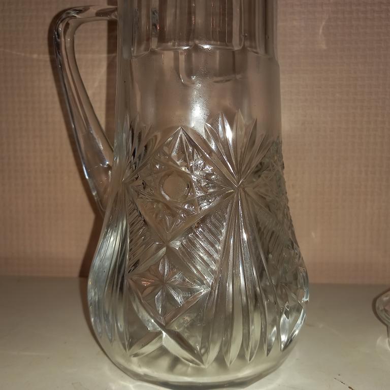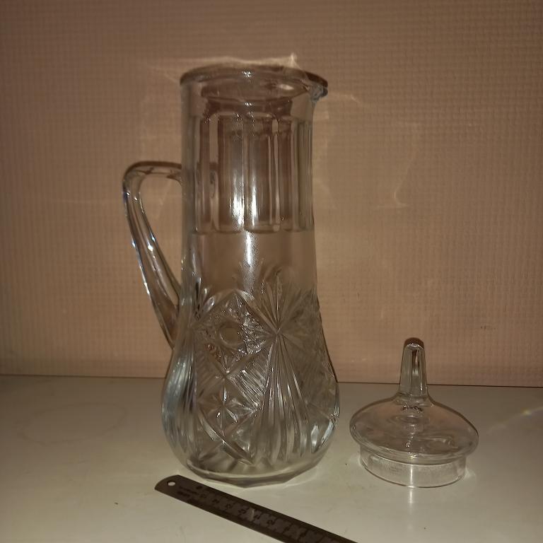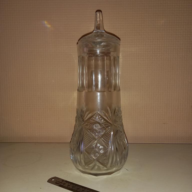 Старый хрустальный графин с крышкой. Общая высота 31 см. Без сколов и трещин! 80-е гг.