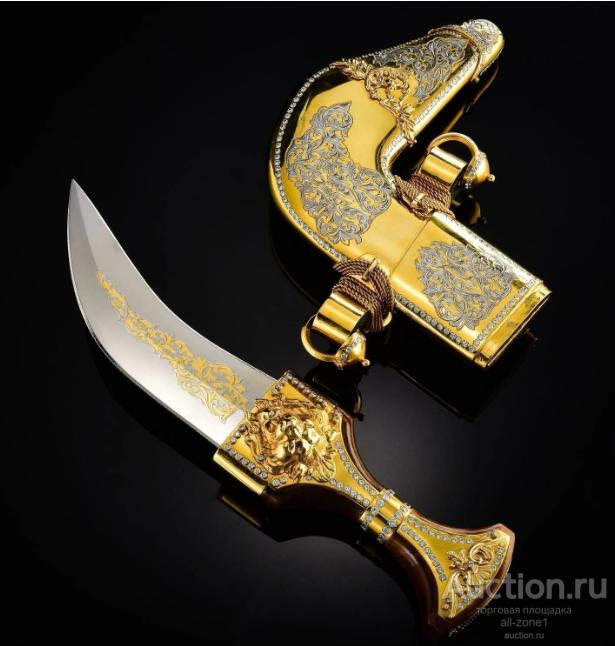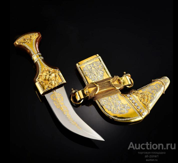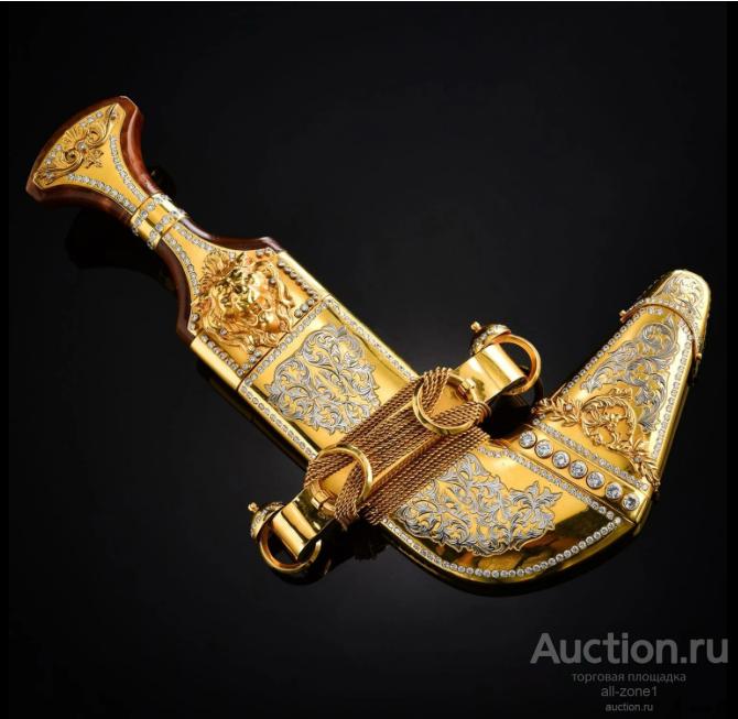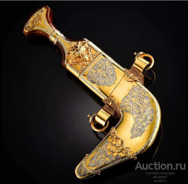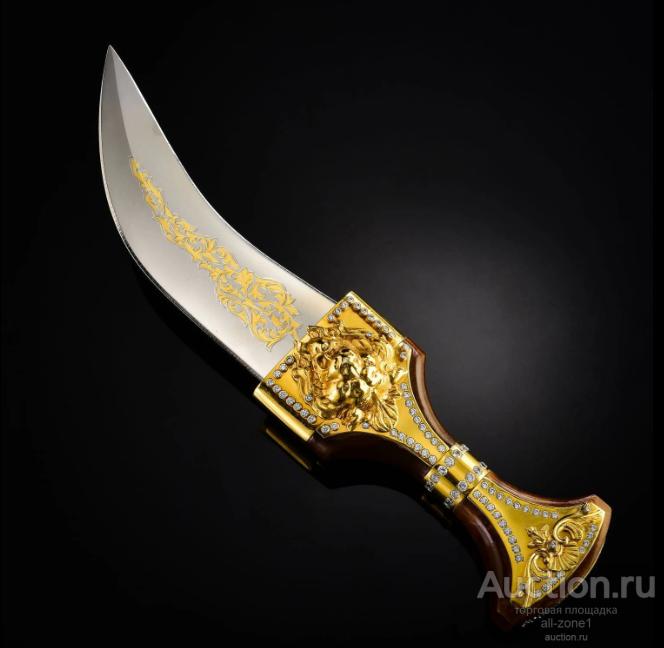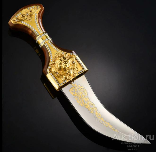 Кинжал подарочный ДЖАМБИЯ AZRV0012467Материал: Сталь, Латунь, фианитыСодержание драгоценных металлов: Никель - 20 мкм, Золото (999,9) - 1,2 мкм, Серебро(925)- 4 мкм.Клинок изделия: сталь ЭИ-107 (40Х10С2М) Общая длина 340,0-370,0;Твёрдость клинка - NRC- не ограничена Техника исполнения:Многоступенчатый цикл нанесения художественной гравюры: рисовка кистью, подрезка, травление, гравирование, золочение, никелирование, серебрение, чернение, синение.Материалом для рукоятей служат ценные породы дерева: ореха, бука, самшита, берёзового капа, а также натуральная кожа.Специальных разрешений для приобретения изделия не требуется, так как оно по Российскому законодательству не являются холодным оружием, что подтверждается государственной сертификацией, хотя твёрдость клинка превышает нормы по холодному оружию в два с лишним раза – 58 единиц по РОКВЭЛЛУ.Если товара нет на складе, изготовление под заказ в течении 4-5 недель
