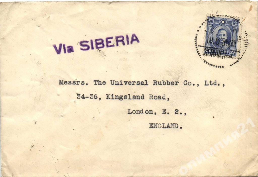 КИТАЙ ПОЧТОВЫЙ КОНВЕРТ