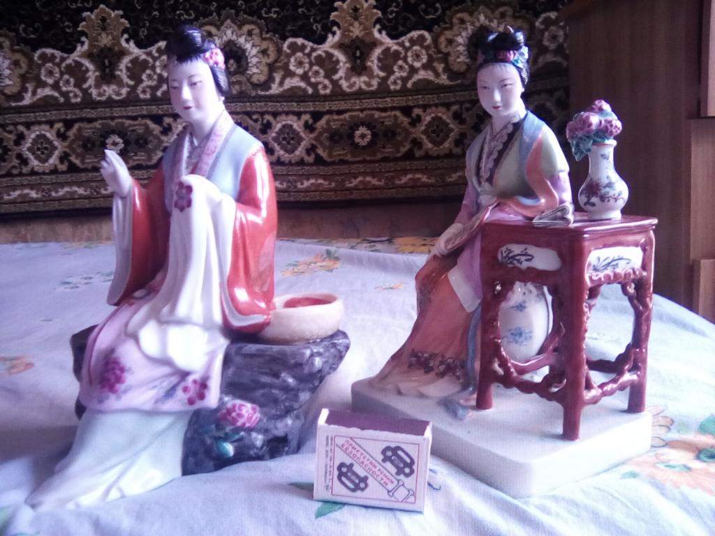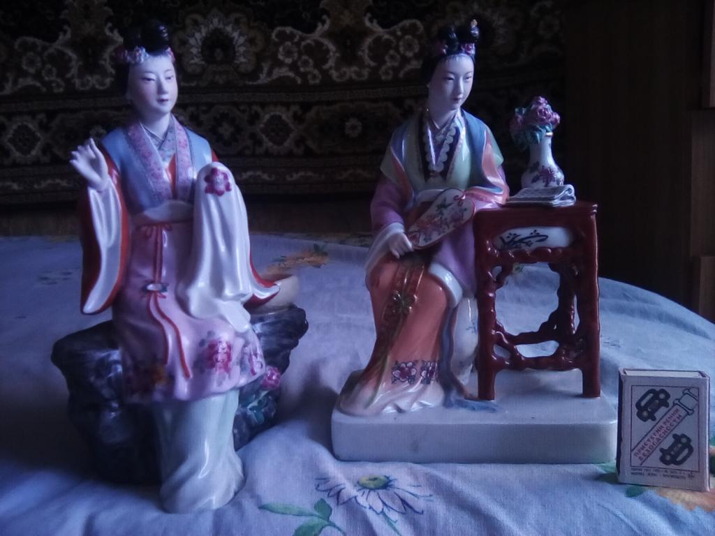Китайский фарфор.Куплено в комисионке СССР в 80 тых годах))Две статуетки У одной статуэтки сломаны кончики пальчиков(нужна реставрация)-цена договорная