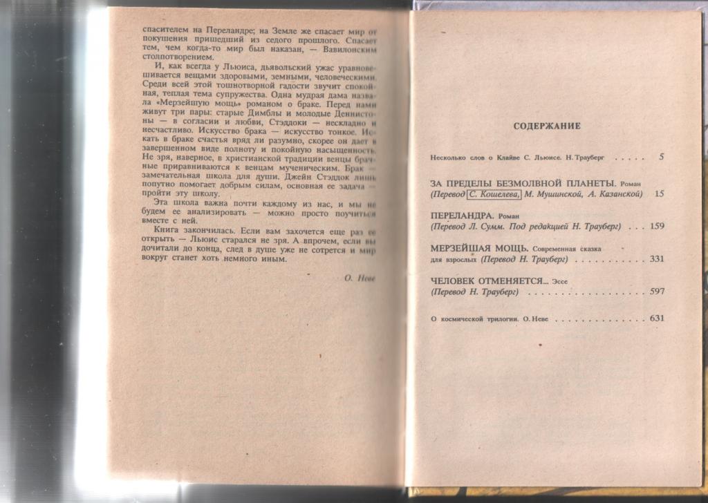 Клайв Стейплз Льюис (1898-1963), английский писатель, относится к числу тех авторов, посмертная мировая известность которых явно возрастает со временем. Льюис - автор 49 крупных работ, одной из которых является его знаменитая ``Космическая трилогия`` (За пределами безмолвной планеты, Переландра, Мерзейшая мощь), написанная в жанре НФ. Льюис автор всемирно известной книги ``Хроники Нарнии``. Послесловие О. Неве.
