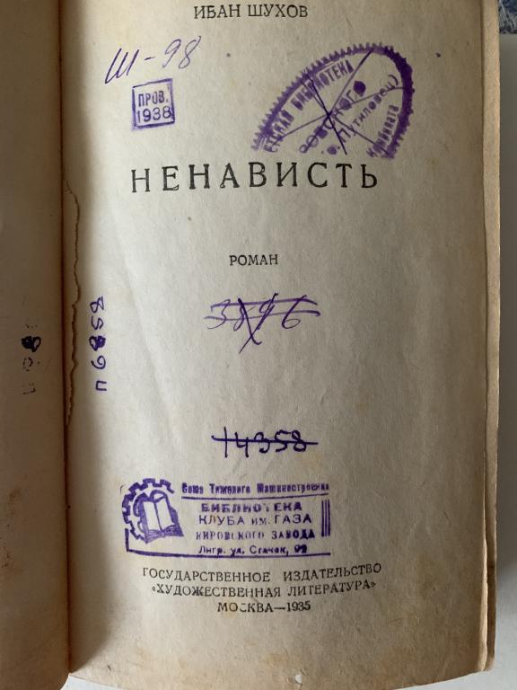 Книга довоенная "Ненависть" Иван Шухов ГосЛитИздат 1935 г.