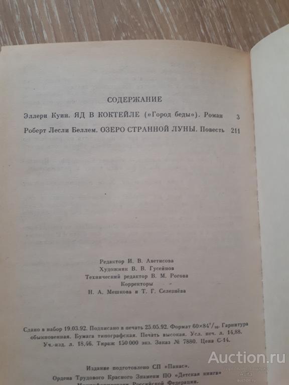 Эллери Куин роман"Яд в коктейле", Роберт Лесли Беллем повесть "Озеро странной луны". 1992 г. издания. Отправка Яндекс доставкой по полной предоплате, почтовые расходы за счет покупателя. Без торга.