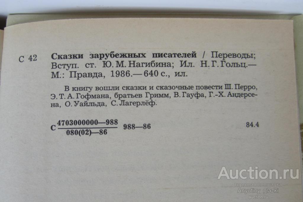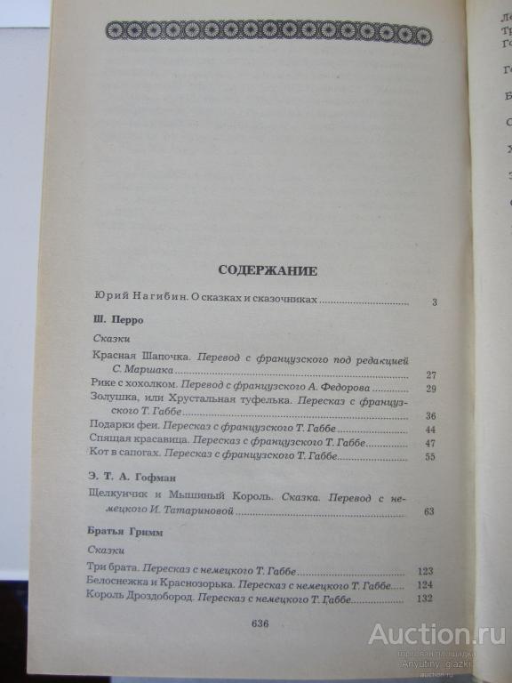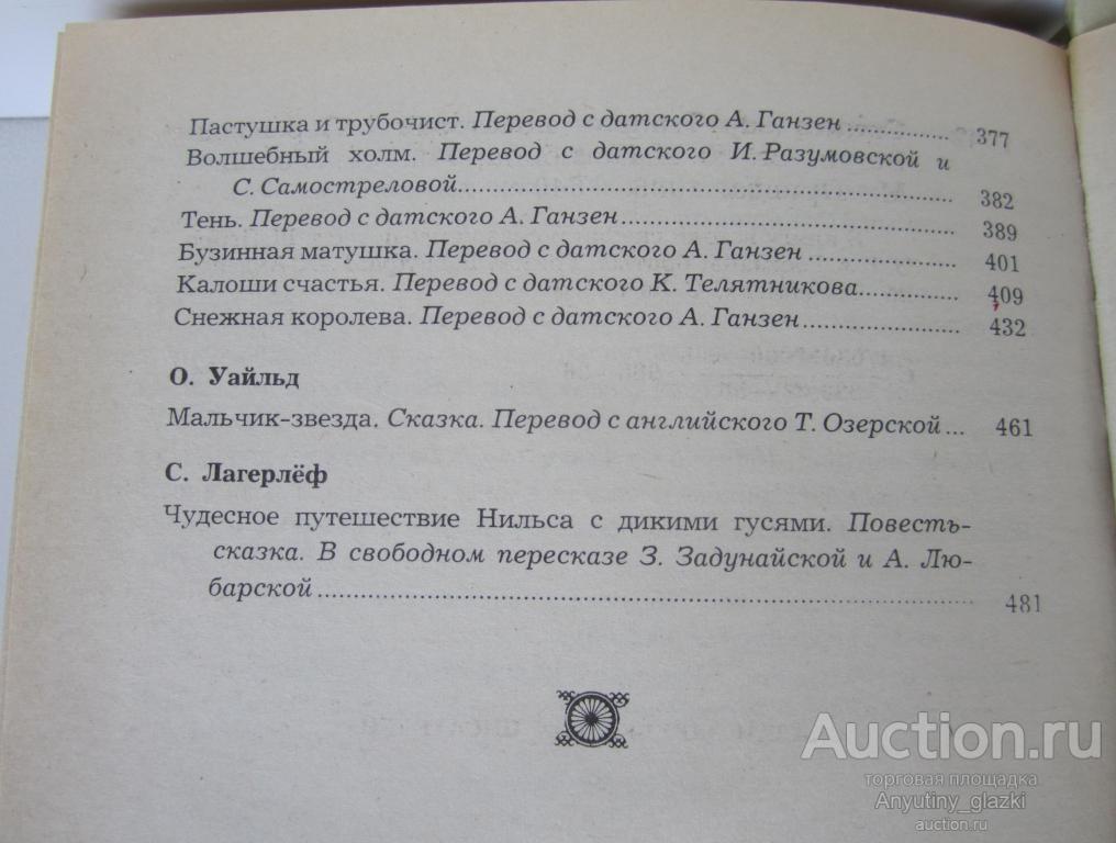 В книгу включены сказки Шарля Перро, Гофмана, Братьев Гримм, Гуафа, Андерсена, О. Уайльда («Звёздный мальчик») и С. Лагерлёф («Чудесное путешествие Нильса с дикими гусями»). Книга в хорошем состоянии.