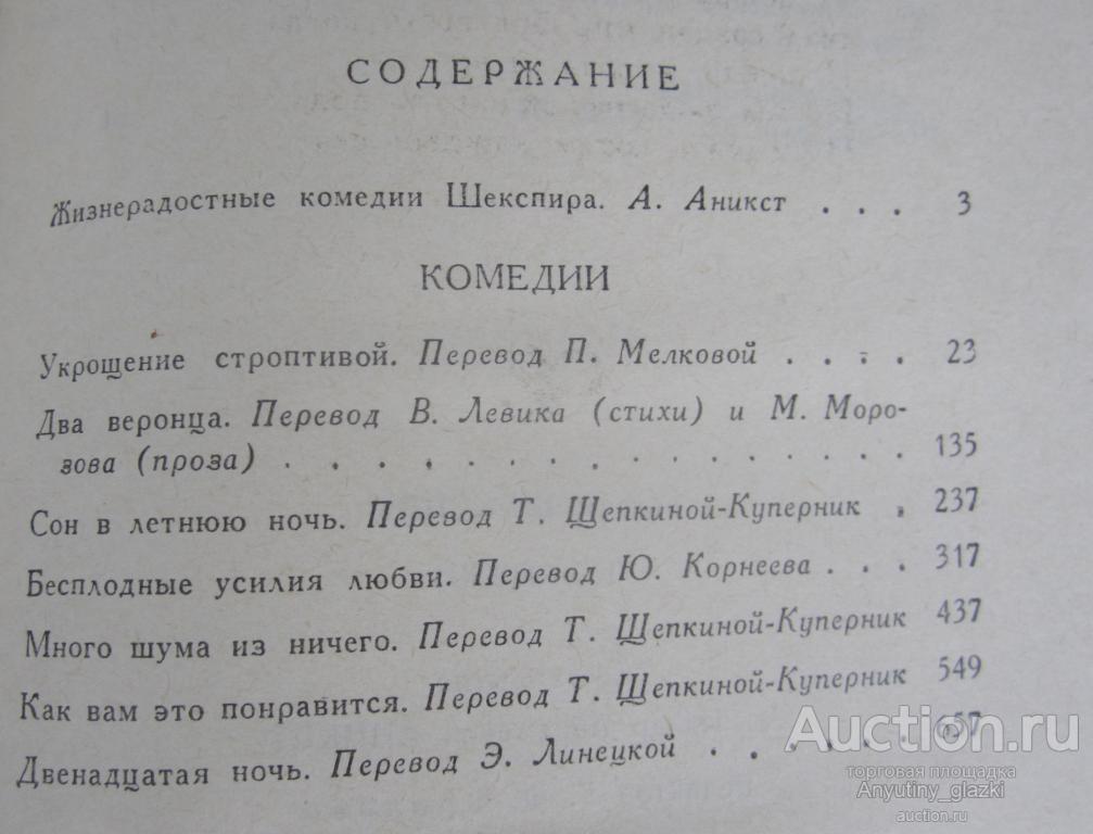 Книга В. Шекспир «Комедии»