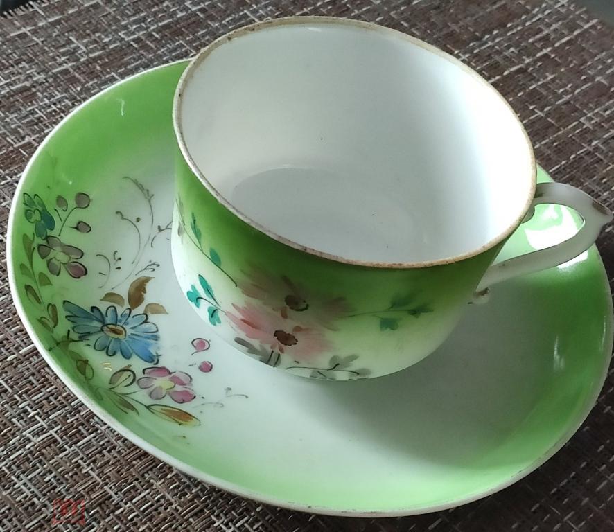 В хорошем состоянии , трещин сколов не нашел,звенит, остатки кофейного сервиза ,клеймо только на чашке.