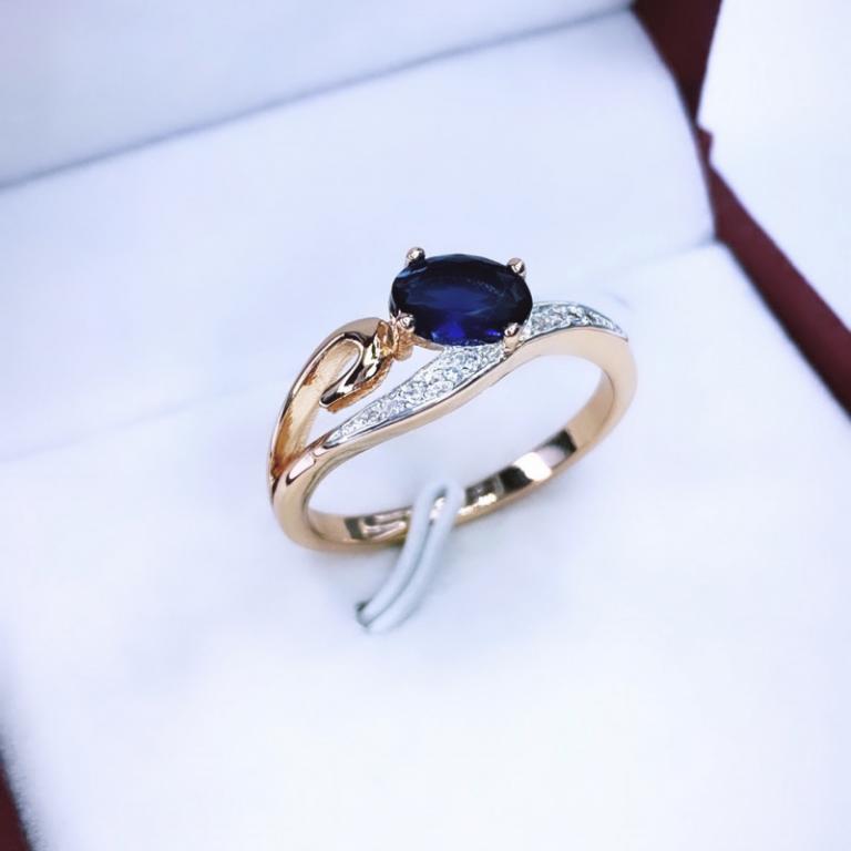 Камень глубокого синего цвета, оттенённый мириадой бесцветных цирконов, удачно подчёркнёт красоту ваших рук. Слегка заметный изгиб линии кольца добавляет изящности и лёгкости этому прекрасному изделию. К такому украшению хочется возвращаться взглядом снова и снова.