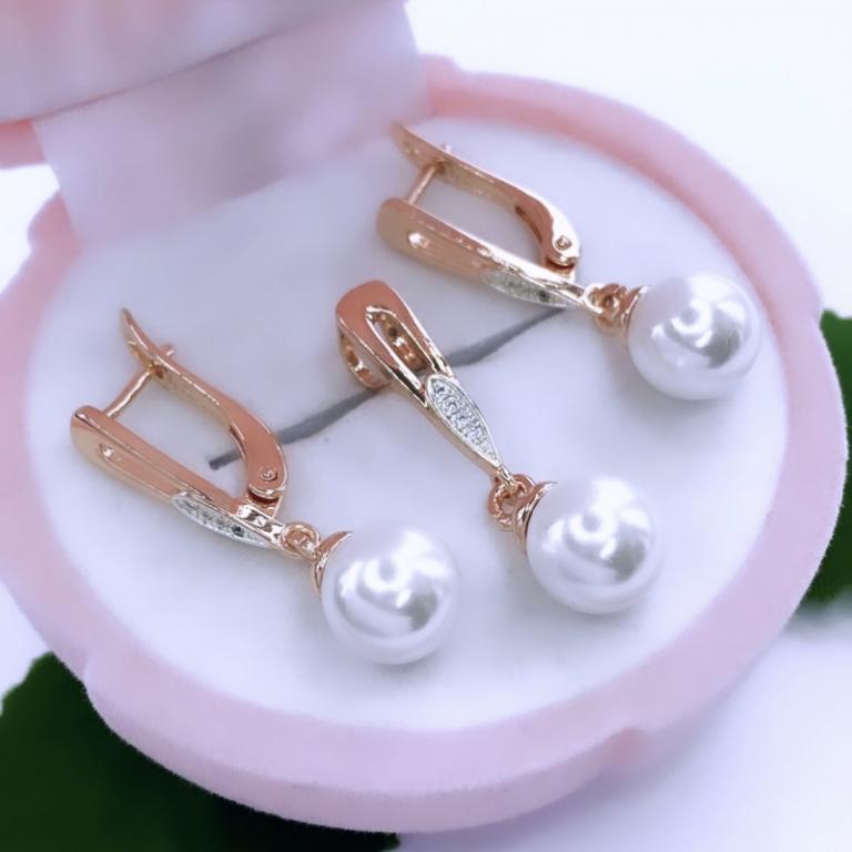 Сочетание нежных перламутровых жемчужин с крошечными прозрачными цирконами не сможет оставить равнодушной ни одну любительницу изысканных и романтичных украшений. Стильный дизайн комплекта, в состав которого входят серьги и подвеска, прекрасно подчеркнёт деловой или вечерний образ своей владелицы. А искусное исполнение подарит комфорт при использовании.