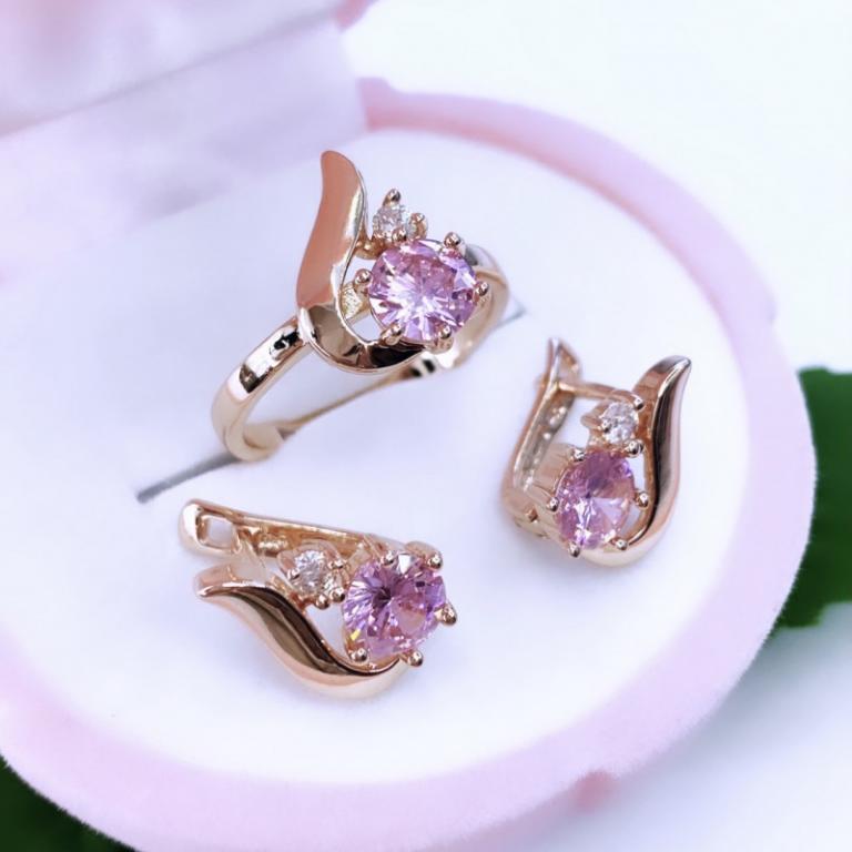 Удивительно нежный и трогательный комплект, состоящий из серёг и кольца, придётся по вкусу любительницам изысканных и утончённых украшений. Сочетание розовых минералов с ноткой крошечного прозрачного циркона и гармоничной формой изделий, придаёт комплекту притягательный облик. Он непременно займёт достойное место в вашей коллекции украшений, и станет основой множества замечательных образов.