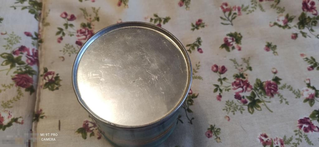 Коробка жестяная. Диаметр 8 см. Высота 10 см. Состояние хорошее.