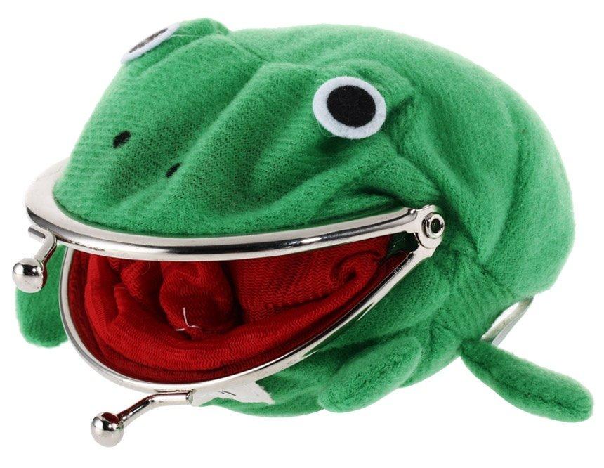 кошелек имеет оригинальную форму в виде лягушки