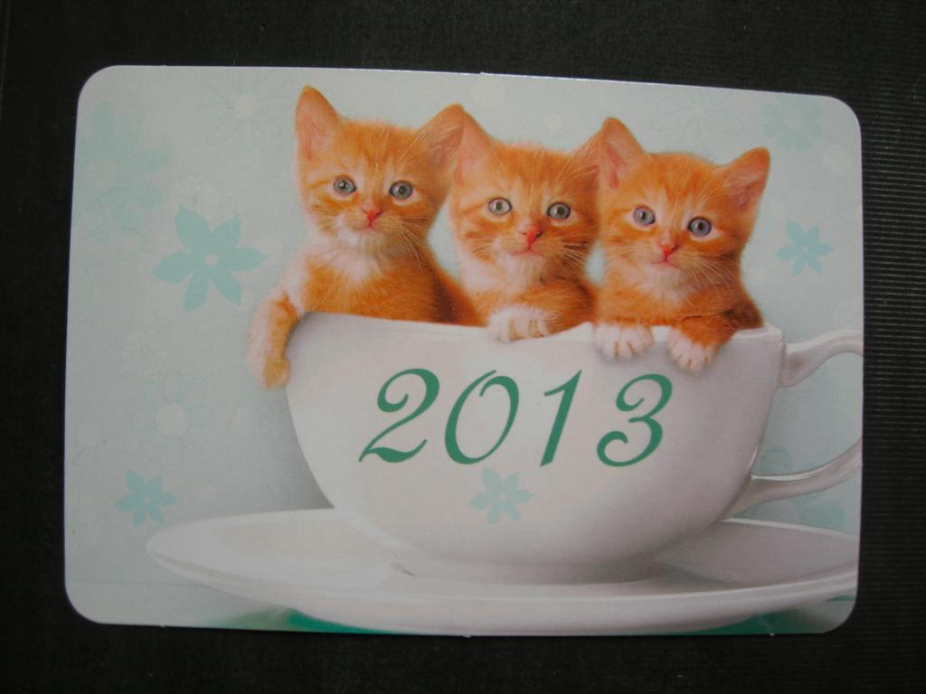 карманный календарик ООО "Цветной мир": рыжие котята в чашке 2013