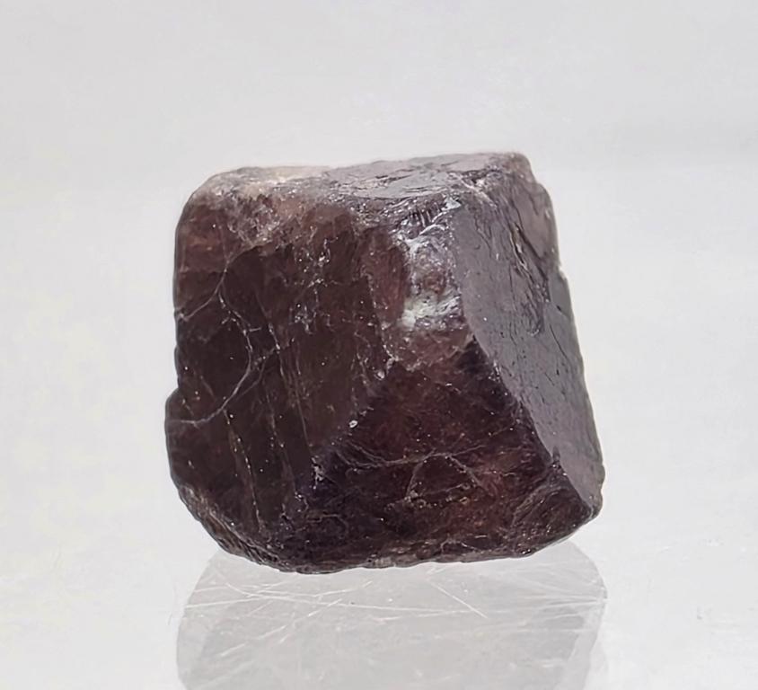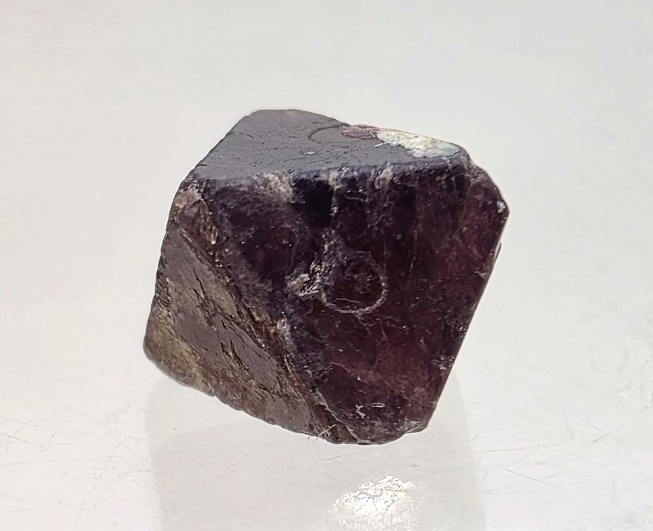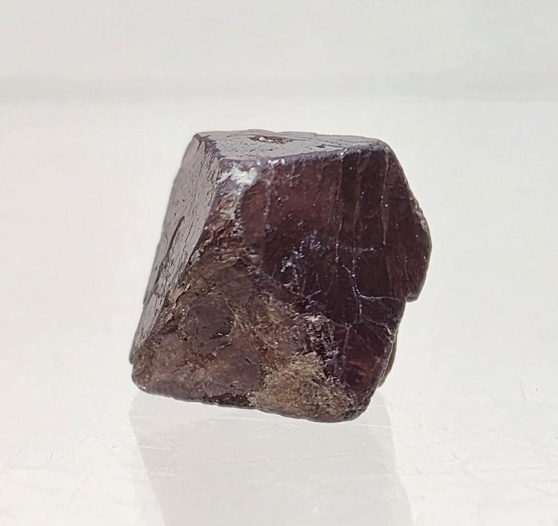 Эстетичный дипирамидальный кристалл красной шпинели, демонстрирующий характерную форму и глубокий винно-красный оттенок. Поверхности граней хорошо читаются, местами сохранив природную матовую текстуру. Компактный, симметричный образец коллекционного качества из классического бирманского месторождения.