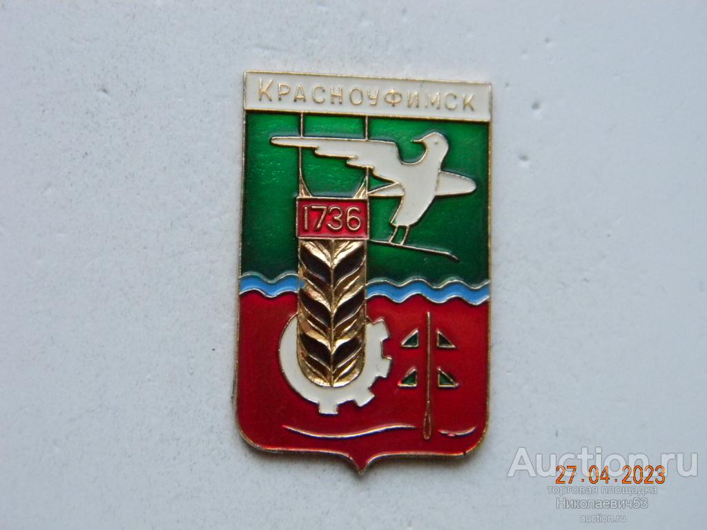 Значок герб г.Красноуфимск 1736, серия Екатеринбургская, выпуск СССР, легкий металл, заколка, клеймо УС. Состояние на скане.