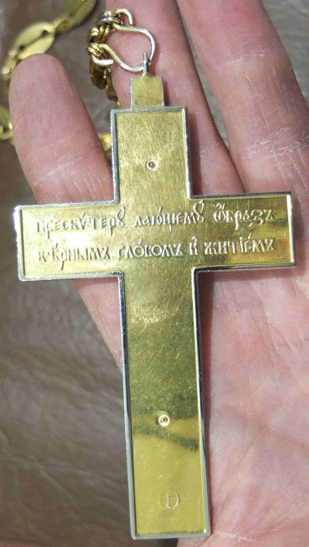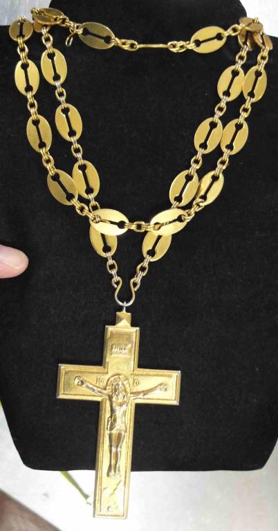 крест наперсный, латунь, золочение