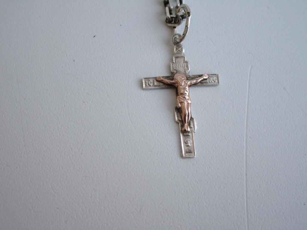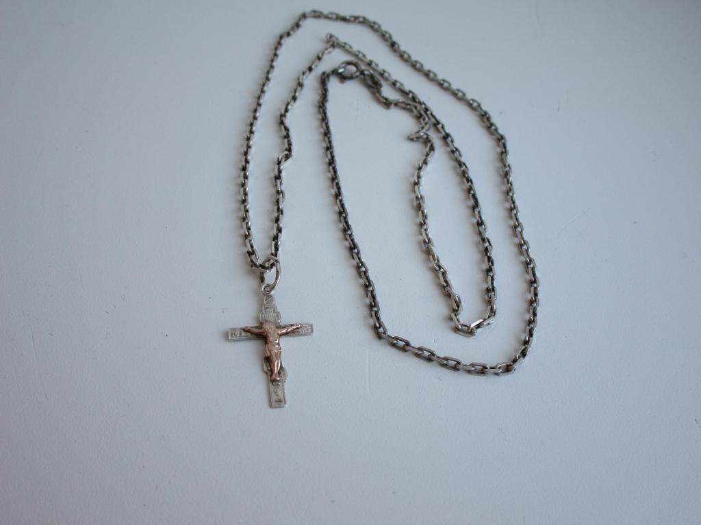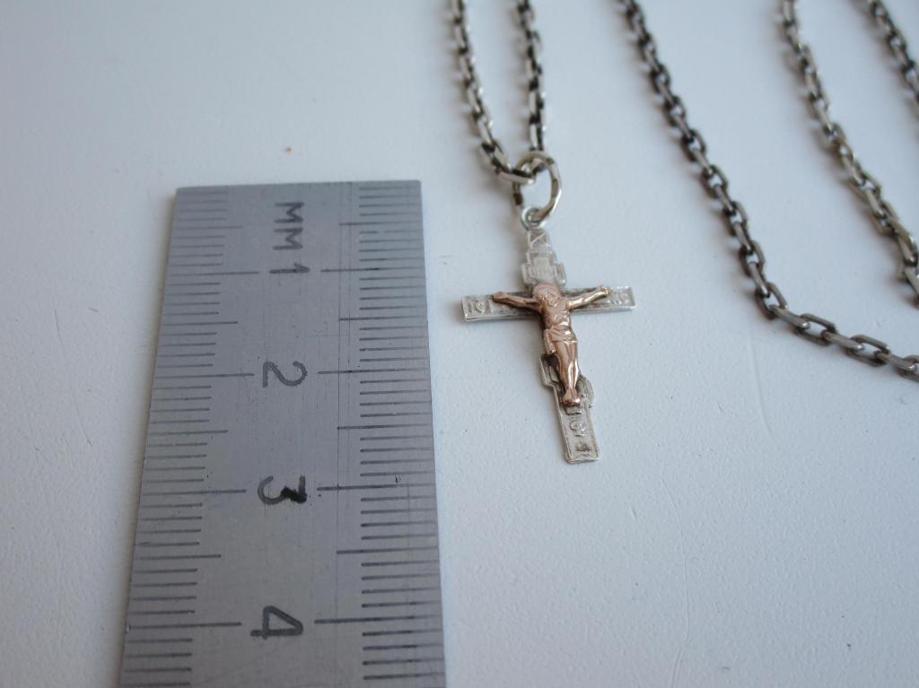 Цепочка и крест-серебро, накладка-золото, длина цепочки 30см., общий вес 7,2гр.