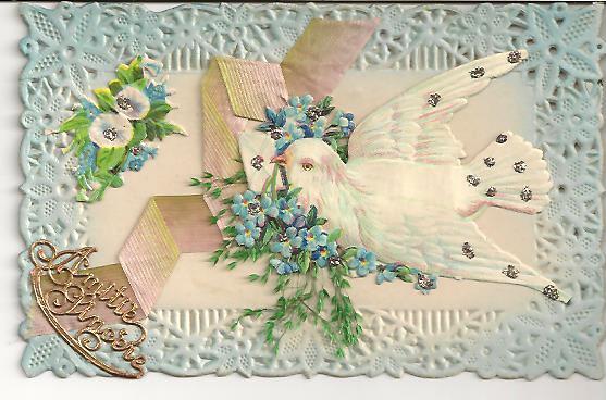 Кружево тиснение, цветы и голубь