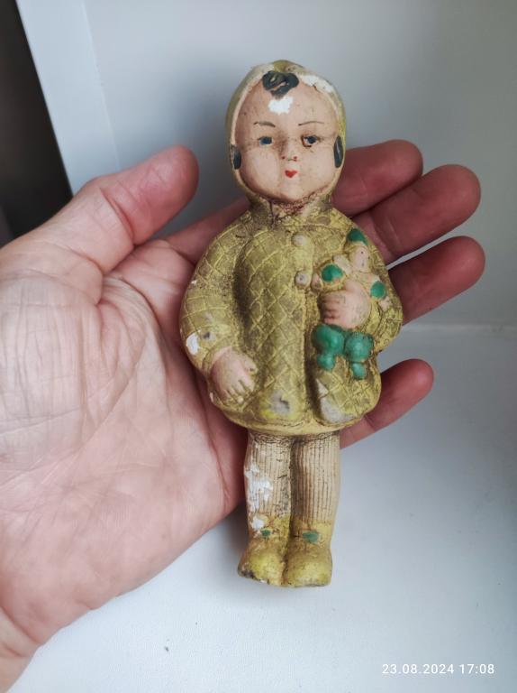 Кукла-пищалка резиновая. "Девочка с клоуном'. Фабрика " Красный треугольник" Ленинград 1950-е гг.