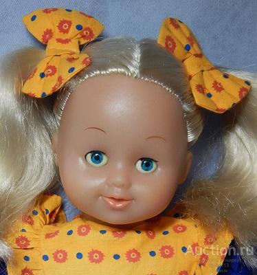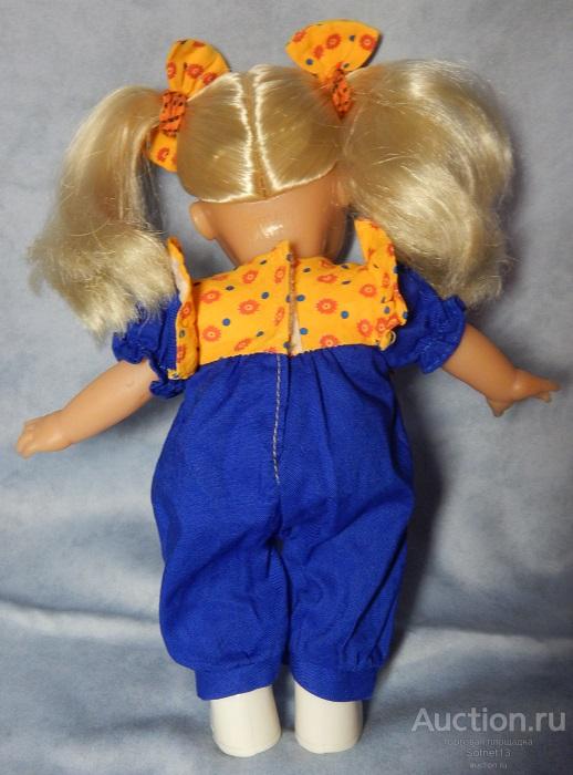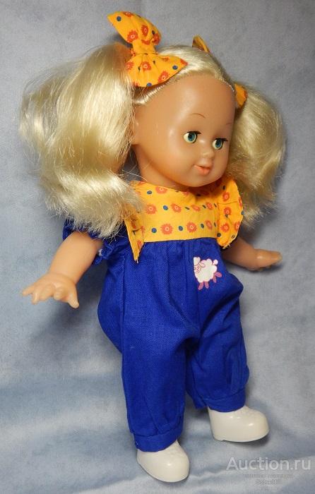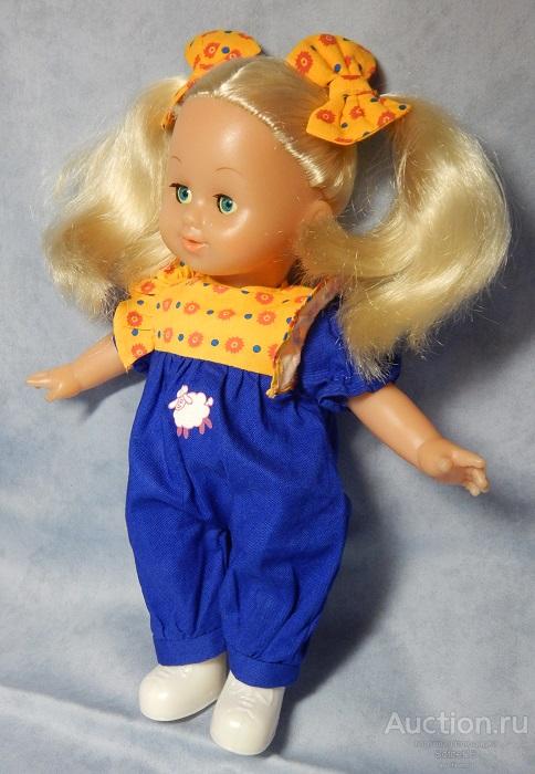 Кукла «Блондинка» (Simba Toys, Китай) в хорошем состоянии. Глазки закрываются. Волосы прошивные. Голова, ручки (до середины плеча) и ножки (до середины бедра) из винила, тело мягконабивное. Высота: 25см.