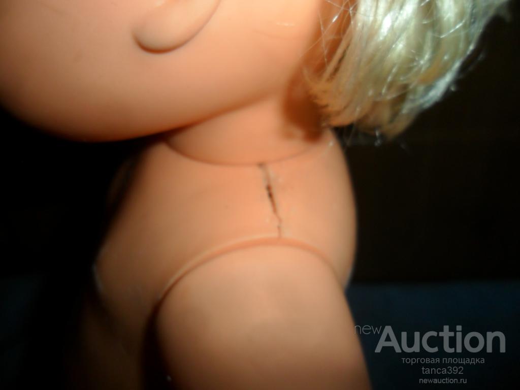 кукла ,сострижено нескольких рядов волос на голове,комбез внатяг,плечо треснуто,мелкие царапины на корпусе