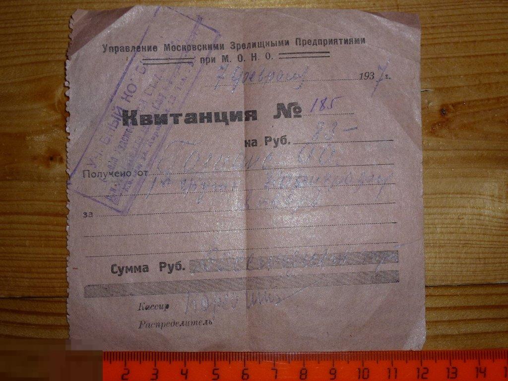 КВИТАНЦИЯ 1937 ГОДА 100% ПОДЛИННОСТЬ, БЕЗ ВМЕШАТЕЛЬСТВ, СТРАХОВКА ПО ТАРИФАМ ПОЧТЫ.