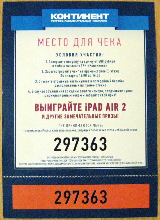 ЛОТЕРЕЯ ТОРГОВО-РАЗВЛЕКАТЕЛЬНОГО КОМПЛЕКСА 'КОНТИНЕНТ'