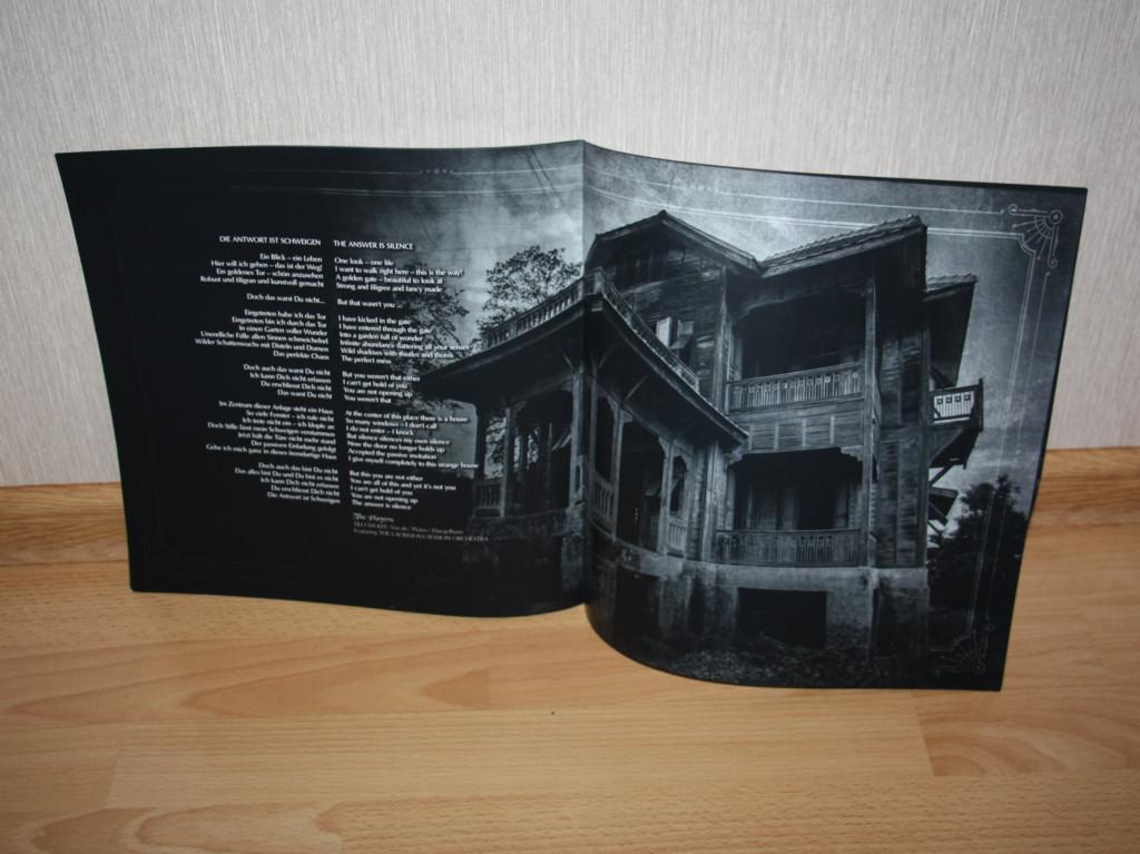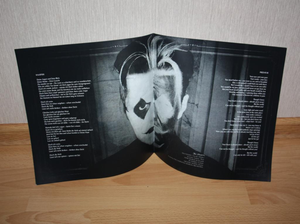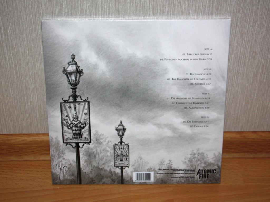 Трудно сказать почему, но первое знакомство с новым альбомом Лакримозы не произвело на меня особо радужного впечатления. То ли время для этого оказалось крайне неудачным, то ли всему виной корявое звучание цифрового формата (коим пришлось ограничиваться в условиях отсутствия информации о возможном издании на виниле), то ли ещё какие катаклизмы, но откровением калибра предыдущего альбома "Testimonium" или более ранних работ Тило Вольффа "Leidenschaft", увы, пока не стал. Не исключаю, и даже очень надеюсь, что этот прискорбный факт останется, наконец, в прошлом благодаря долгожданному появлению альбома в аналоговом формате. Автором релиза, несколько неожиданно, стали на этот раз не Night Of The Vinyl Dead и даже не Northeast Steel Industry, а немецкая компания Atomic Fire, но, судя по первому поверхностному знакомству, смена издателя на качестве дебюта "Leidenschaft" на виниле плачевно не отразилась, выглядит издание весьма представительно. Вообще это на самом деле уже четвёртый пресс: первый тиражом 1000 экземпляров был отпечатан на мраморном виниле преимущественно красного цвета (плюс белого и чёрного), следом второй уже вдвое меньшим тиражом на жёлто-зелёно-сине-чёрт-поймёшь-каком виниле, третий опять же тиражом 500 экземпляров на смеси оранжевого с красным и белым, а в феврале 2023 года ещё 500 пластинок вышли уже на белом виниле, это как раз одна из них. Двойник в разворотном конверта комплектуется 20-страничным полноформатным буклетом, то есть на полиграфии издатели экономить не стали, презентовав альбом по полной программе.