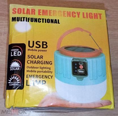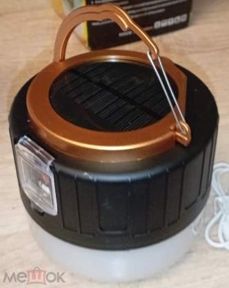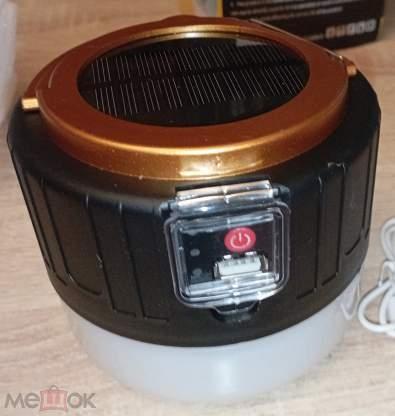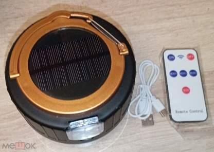 новый кемпинговый фонарь-лампа с солнечной батареей Solar charging outdoor emergency lamp. USB mobile power. с аккумулятором, с USB-зарядкой, пультом. в упаковке (немного помята)